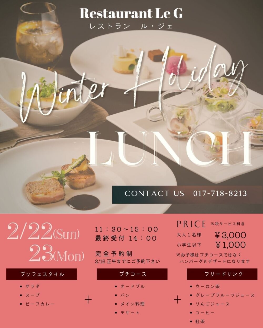 完全予約制となりますので2/16正午までにご予約下さいませ!