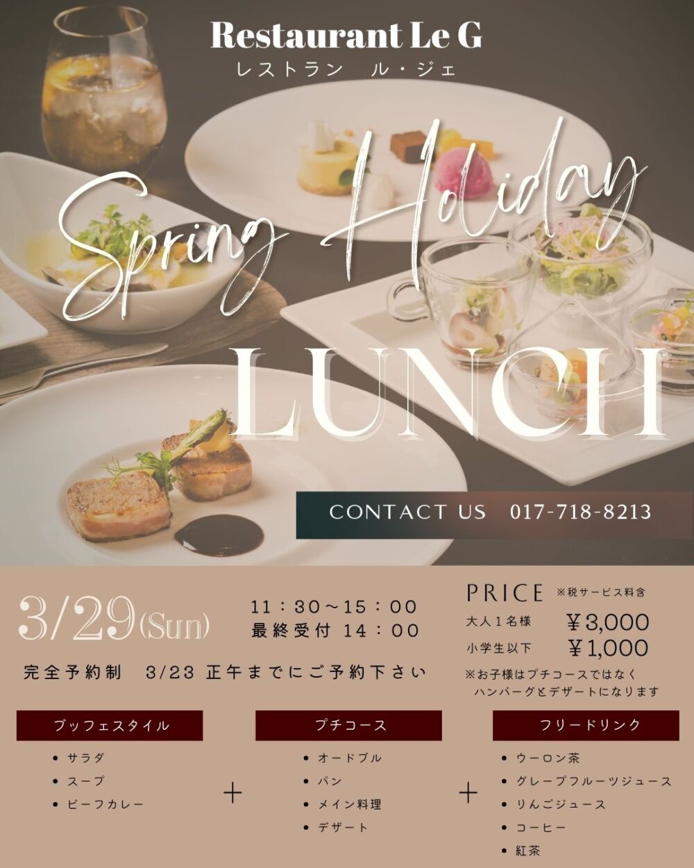完全予約制となりますので3/23正午までにご予約下さいませ!